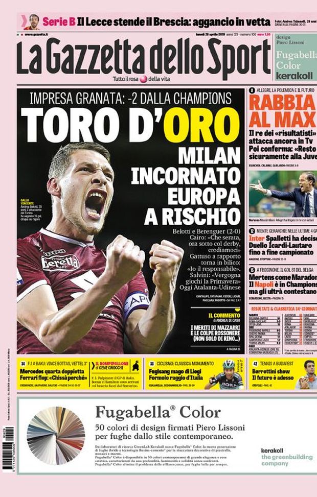 Milan sui media, le prime pagine dei giornali di oggi (29/04/2019)