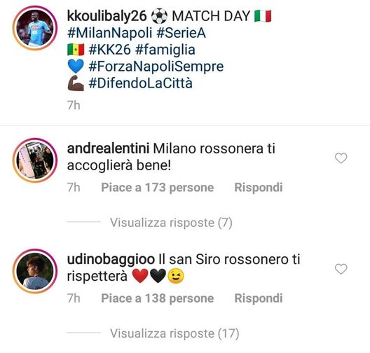 Kalidou Koulibaly ha postato su Instagram una foto relativa al match di questa sera, e i tifosi del Milan hanno scritto al difensore numerosi messaggi