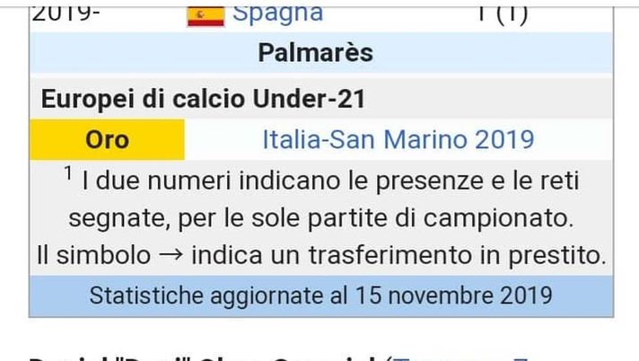 Dani Olmo è vicinissimo al Milan, tanto che secondo Wikipedia è già milanista. Operazione in chiusura. Ecco la foto del famoso sito.