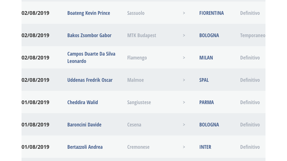 "Il Diavolo ha depositato in Lega Calcio il contratto di Duarte, che arriverà in rossonero per 11 milioni di euro, lo scorso 2 agosto, il giorno prima al deposito del contratto quinquennale di Ismael Bennacer con il club meneghino.