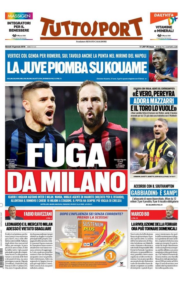 L’ edicola – 10 gennaio 2019: le prime pagine dei quotidiani sportivi