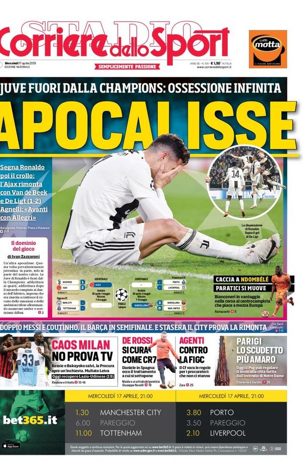 L’ edicola – 17 aprile 2019: le prime pagine dei quotidiani sportivi