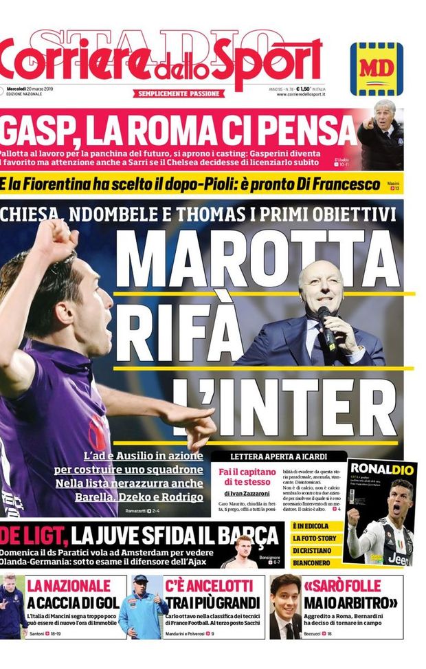 L’ edicola – 20 marzo 2019: le prime pagine dei quotidiani sportivi