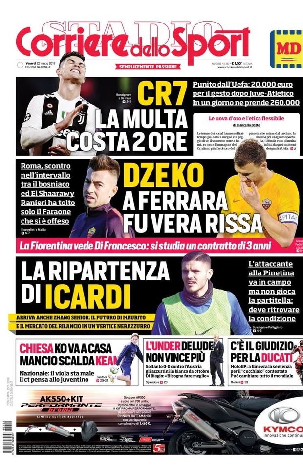 L’ edicola – 22 marzo 2019: le prime pagine dei quotidiani sportivi