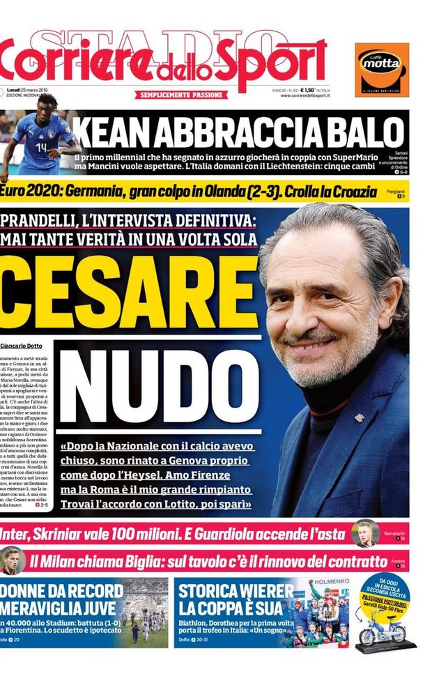 L’ edicola – 25 marzo 2019: le prime pagine dei quotidiani sportivi