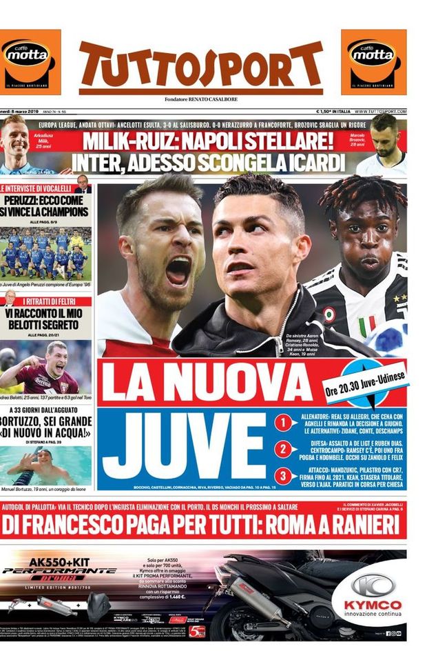 Come di consueto, Tuttosport apre con la Juventus in copertina: "La nuova Juve" è il titolo del giornale torinese. I bianconeri sembrano pronti a una mini rivoluzione con un nuovo allenatore, una nuova difesa e qualche novità anche in attacco. Stasera, intanto, sfida l'Udinese. Anche qui poi spazio solo al calcio europeo, niente spazio per il Milan.