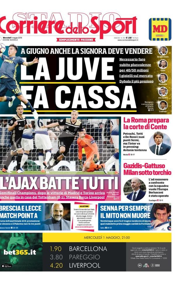 Milan sui media, le prime pagine dei giornali di oggi (01/05/2019)