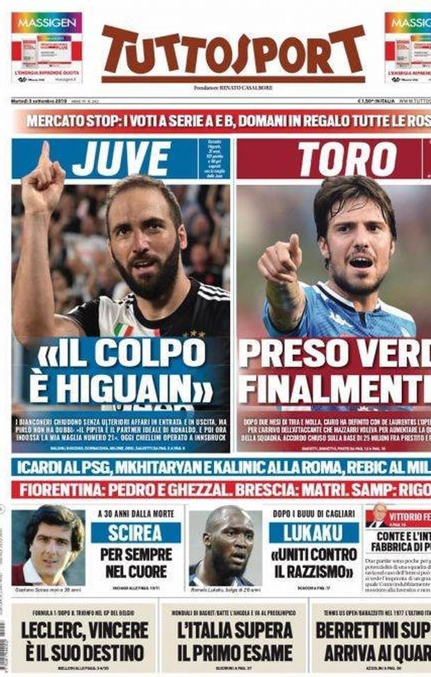 Milan sui media, le prime pagine dei giornali di oggi (03/09/2019)