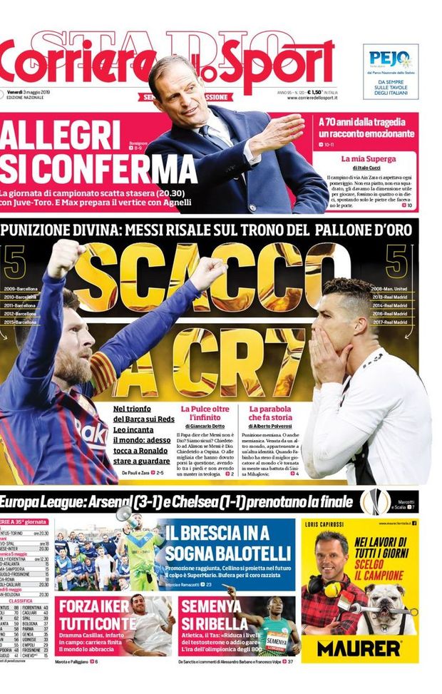 Milan sui media, le prime pagine dei giornali di oggi (03/05/2019)