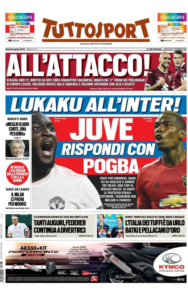 Milan sui media, le prime pagine dei giornali di oggi (08/08/2019)