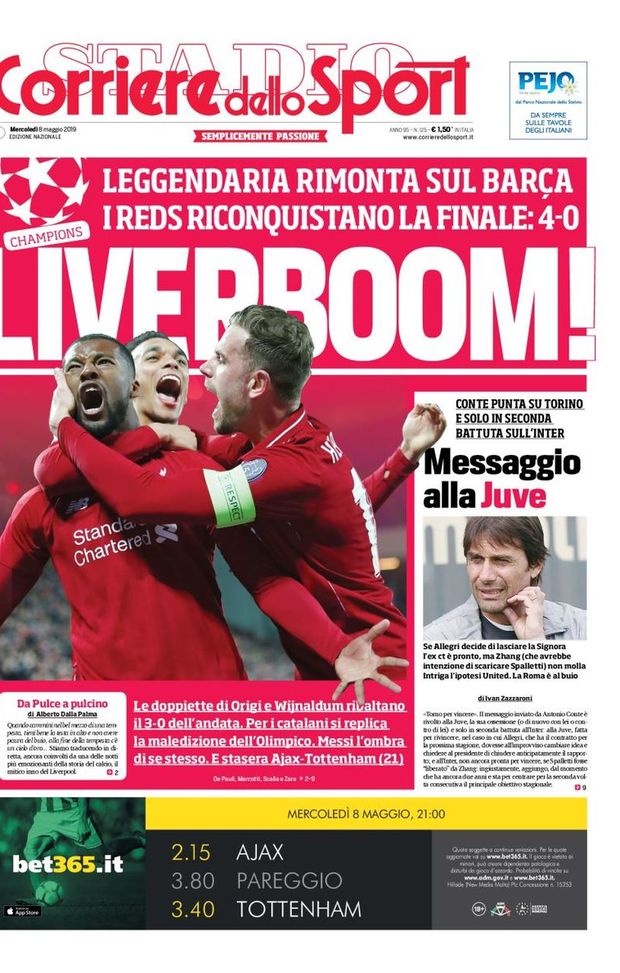 Milan sui media, le prime pagine dei giornali di oggi (08/05/2019)