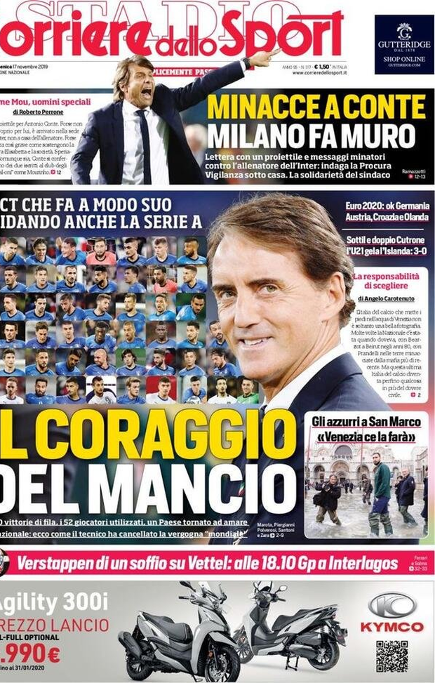 Milan sui media, le prime pagine dei giornali di oggi (17/11/2019)
