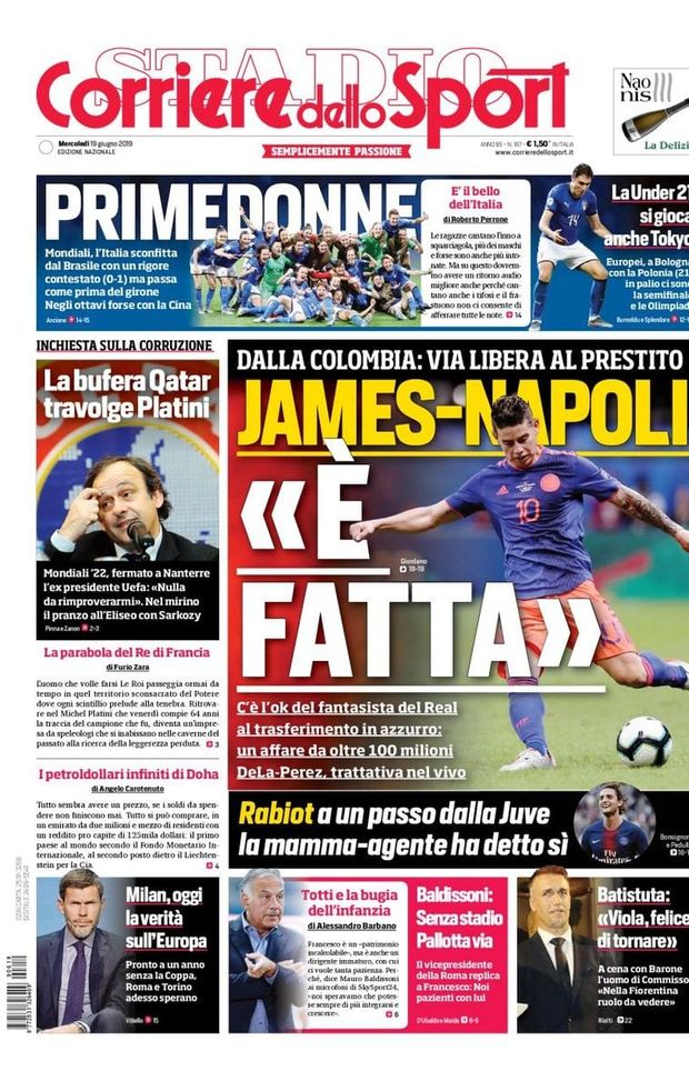 Milan sui media, le prime pagine dei giornali di oggi (19/06/2019)