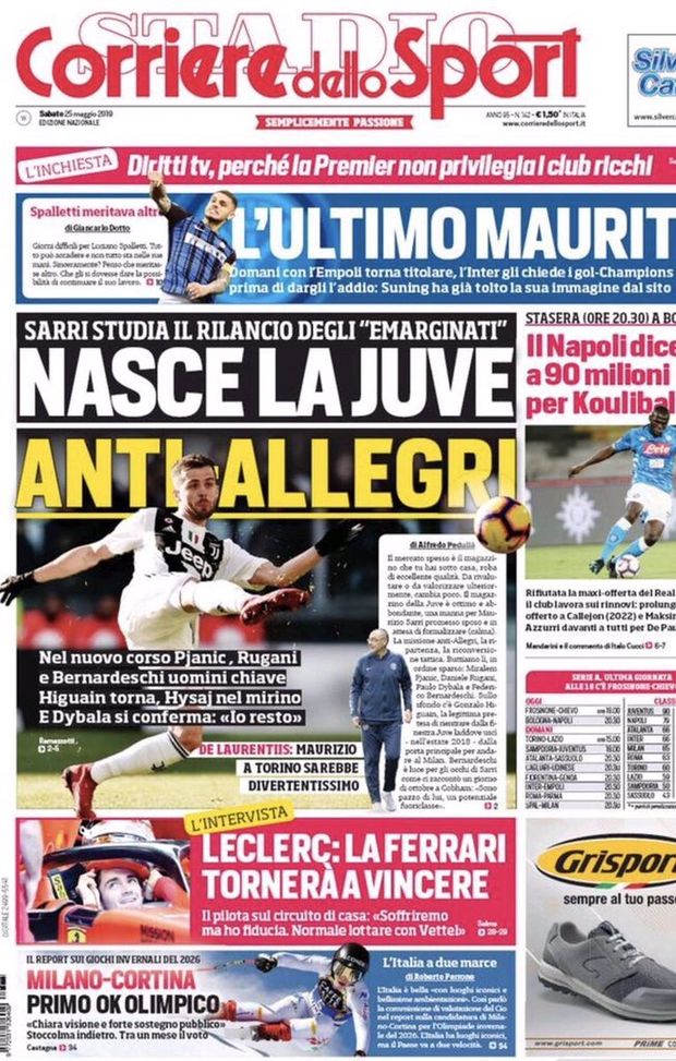 Milan sui media, le prime pagine dei giornali di oggi (25/05/2019)