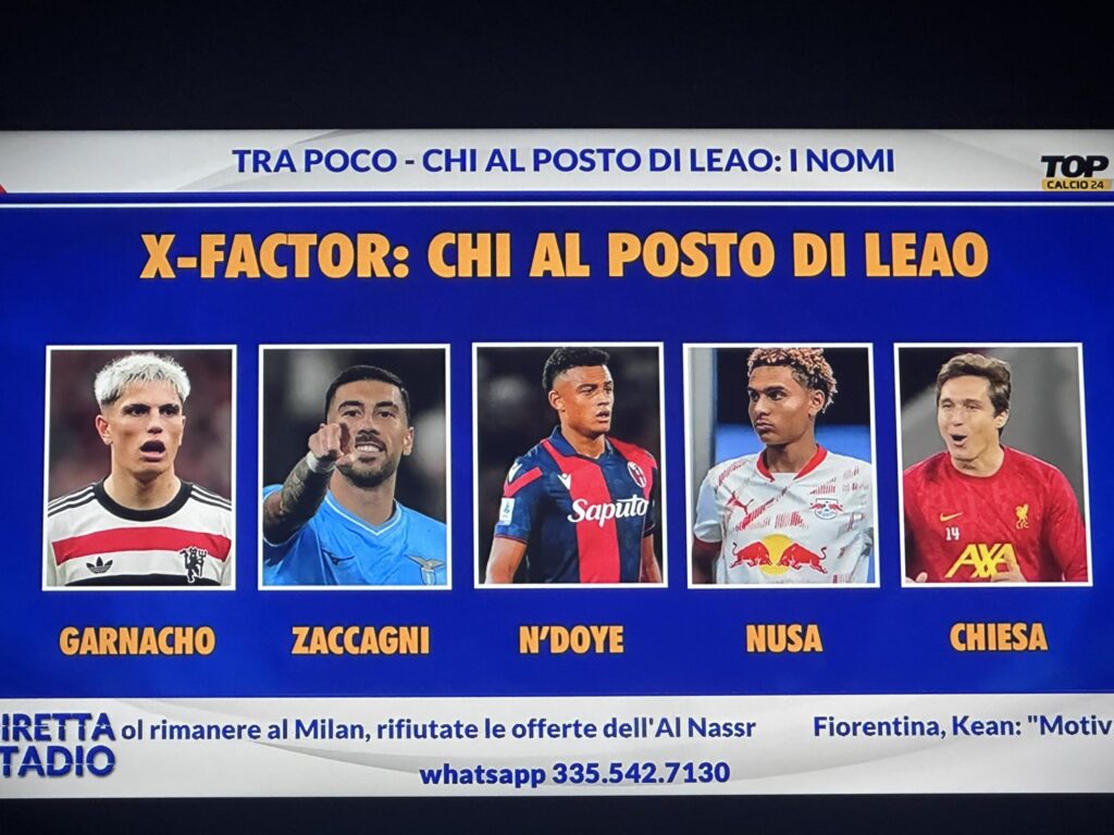 'TeleLombardia', parlando del calciomercato del Milan, si è divertita un paio di giorni fa a buttare giù qualche nome plausibile, per il Milan, nel caso di cessione di Leão al miglior offerente. Due provenienti dalla Serie A italiana, ovvero Mattia Zaccagni (Lazio) e Dan Ndoye (Bologna). Sul quale, però, va detto, sembra esserci già adesso il Napoli di Antonio Conte con insistenza.