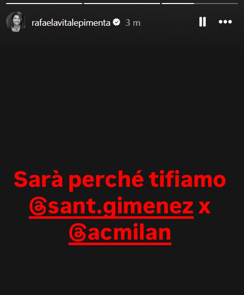 Rafaela Pimenta, procuratrice anche di Santiago Gimenez, ha scritto un post chiarissimo sul futuro dell'attaccante del Milan. Ecco la storia su Instagram.