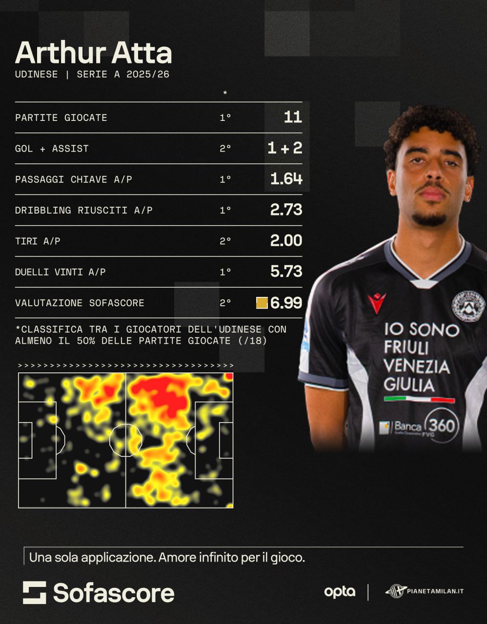 Atta è un giocatore sicuramente molto interessante: un centrocampista molto bravo nel dribbling in grado di aprire la strada per lui e per i compagni. E' un centrocampista fisico, datato di corsa e anche di grande qualità. Tutte caratteristiche che piacciono molto a Massimiliano Allegri. Certo il centrocampo del Milan è già molto pieno e completo, ma per il futuro nulla è da escludere e un giocatore che sta facendo così bene come Atta è ovvio che possa essere osservato da una squadra importante come il Milan.