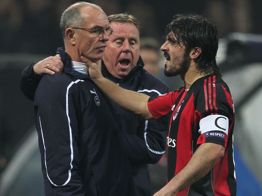 Indimenticabile il momento in cui Gattuso, nel corso del match dell'ottavo di finale contro il Tottenham si è ritrovato faccia a faccia con Joe Jordan, ex Milan. Preso per il collo e scaraventato lontano. A fine gara, poi, si è reso protagonista di una rissa non da poco. Intervistato dalle Iene, Rino ha ricordato con un po' di vergogna il momento, sottolineando anche la doppia brutta figura: aveva la fascia di capitano al braccio!
