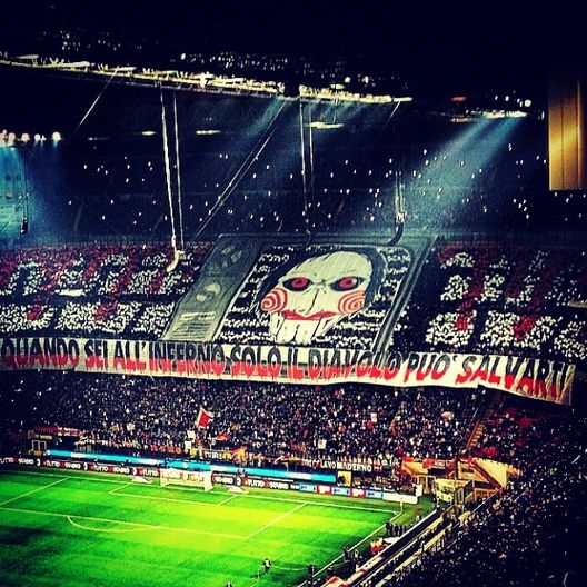 "I rossoneri, nella stagione 2014-2015, sono affidati al tecnico Filippo Inzaghi, cannoniere da 126 gol con il Milan: una scelta che si rivelerà infelice. In quel campionato, i derby finiscono con due pareggi. Il 23 novembre 2014, nel 'San Siro' rossonero, la Curva Sud, però, cerca di incutere timore agli avversari, sulla cui panchina si assiste al nuovo debutto di Roberto Mancini, con l'effigie di Jigsaw, protagonista della saga horror 'Saw L'Enigmista', ed una citazione da uno dei film che richiamava al Diavolo ed all'inferno. In campo, poco spettacolo: 1-1 con reti di Jérémy Ménez e Obi.