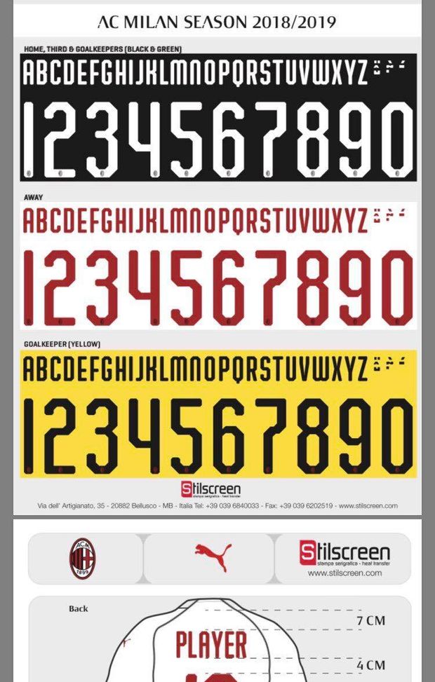 Milan-Puma, ecco il font dei numeri sulle maglie