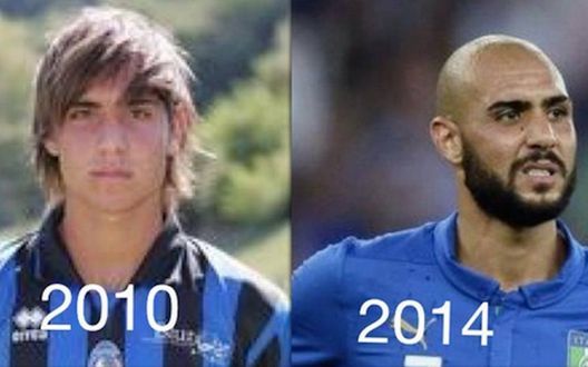 "Simone Zaza, che per il Milan ha tifato da bambino, è invece cresciuto calcisticamente nell'Atalanta: nel 2010, l'attaccante calabrese aveva una folta chioma castana, sbarazzina, che gli ricopriva quasi gli occhi. Appena 4 anni più tardi, l'attuale centravanti del Valencia è completamente rasato, 'extrema ratio' contro la calvizie imperante.