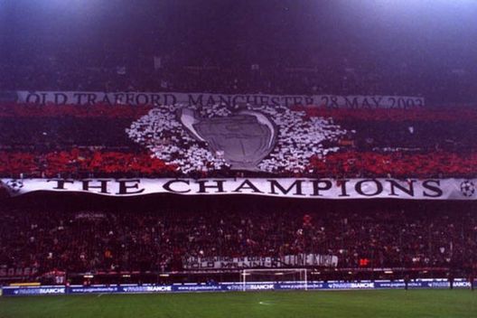 Manchester è per sempre. Una vittoria come quella non passerà mai di moda, non sarà mai passato troppo tempo per ricordarla. Figurarsi dopo appena cinque mesi. Era il primo novembre 2003 e Milan e Juventus si affrontavano in campionato. Finita 1-1. Sugli spalti prima del match, però, la Curva Sud ha, semplicemente, ricordato ai rivali storici come fosse finita la partita più importante della storia del calcio italiano: "The Champions" con una gigantografia della coppa che, ancora oggi, resta un incubo per i bianconeri.
