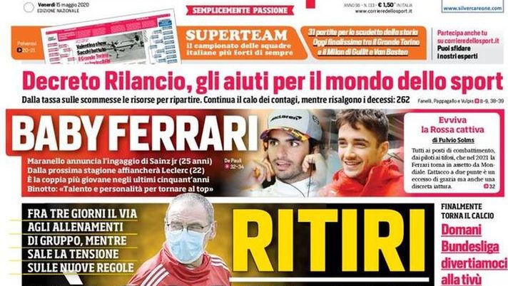 CORRIERE DELLO SPORT – La prima pagina di oggi, 15 maggio 2020