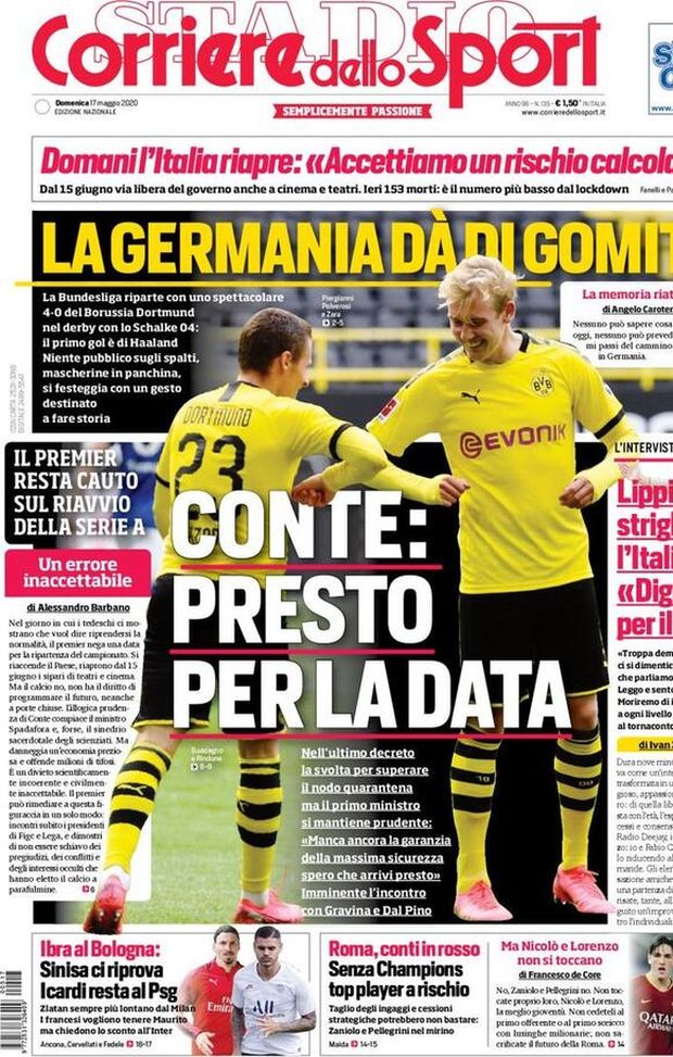 CORRIERE DELLO SPORT – La prima pagina di oggi, 17 maggio 2020