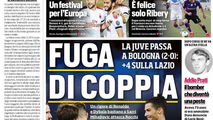 CORRIERE DELLO SPORT – La prima pagina di oggi, 23 giugno 2020