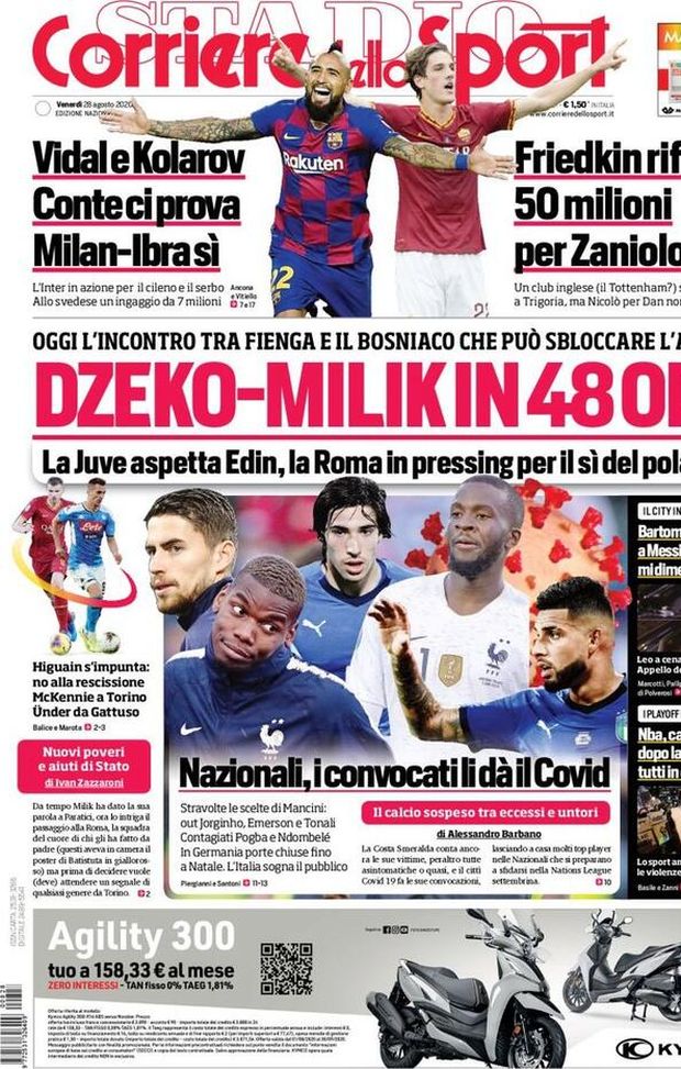 CORRIERE DELLO SPORT – La prima pagina di oggi, 28 agosto 2020