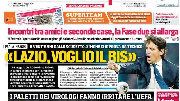CORRIERE DELLO SPORT – La prima pagina di oggi, 13 maggio 2020