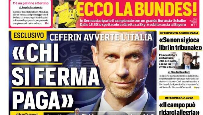 CORRIERE DELLO SPORT – La prima pagina di oggi, 16 maggio 2020