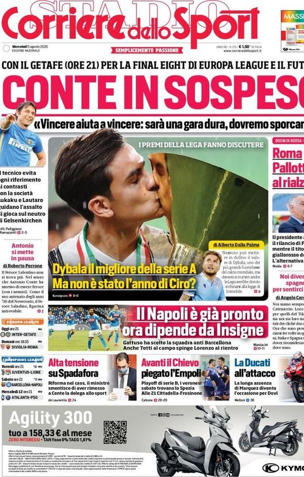 CORRIERE DELLO SPORT – La prima pagina di oggi, 5 agosto 2020