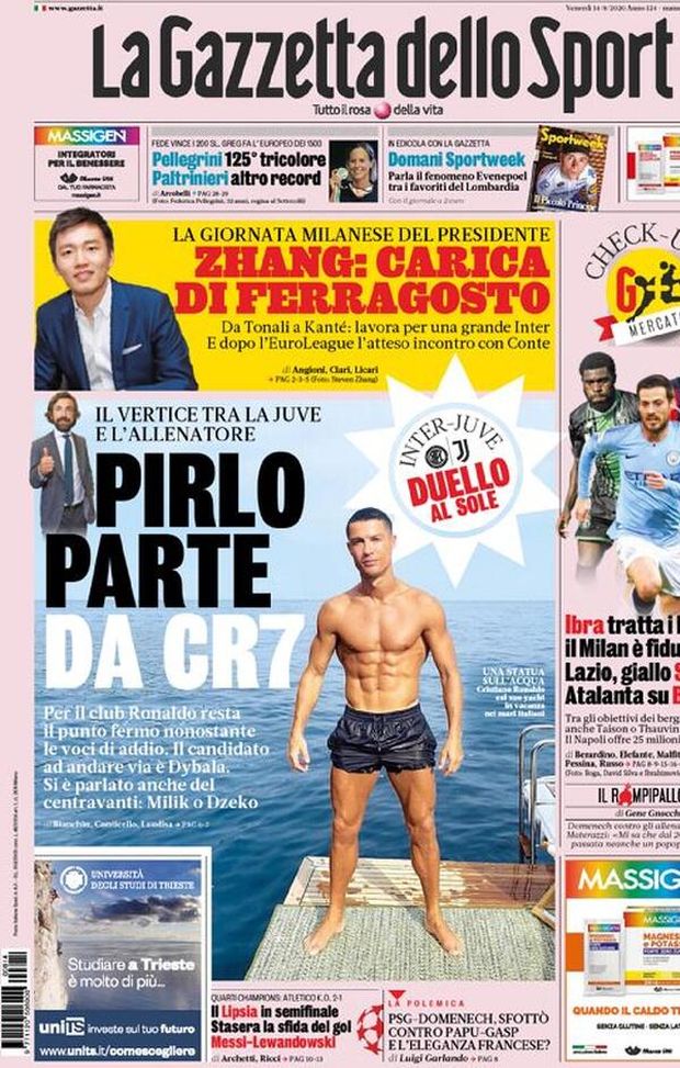 GAZZETTA DELLO SPORT – La prima pagina di oggi, 14 agosto 2020