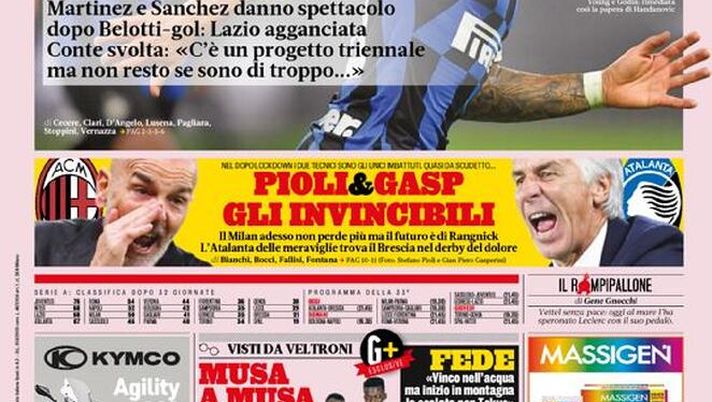 GAZZETTA DELLO SPORT – La prima pagina di oggi, 14 luglio 2020