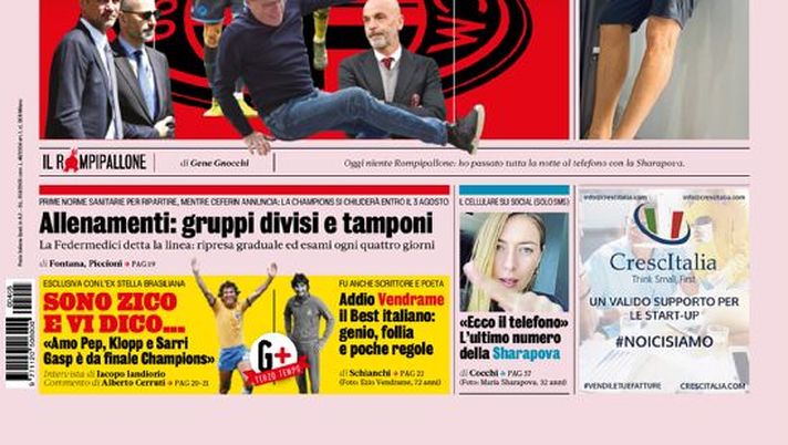 Come sempre, grande spazio viene riservato al Calcio, con news e approfondimenti sul calciomercato, le squadre e – ovviamente - la Serie A e la sua ripresa. La pausa forzata, causa Coronavirus, si allunga ed è ancora incerto il finale di campionato e la sua eventuale formula. Playoff, playout, spareggi Champions ed Europa League? Tutto è possibile. Rimangono tanti interrogativi: quando si gioca? A chi andrà lo scudetto? Quando verranno ripresi gli allenamenti? Tutte domande che – come potrete leggere - rimangono sospese al momento. Sul ritorno in campo, infatti, è in atto un vero e proprio scontro tra club. Queste le altre prime pagine di giornata>>>