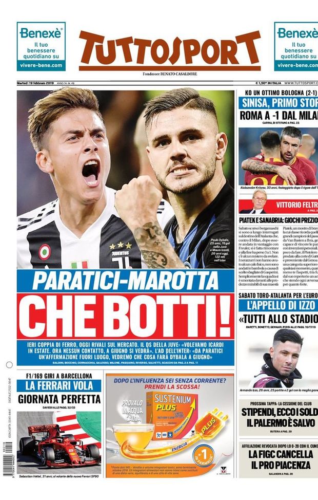 L’ edicola – 19 febbraio 2019: le prime pagine dei quotidiani sportivi