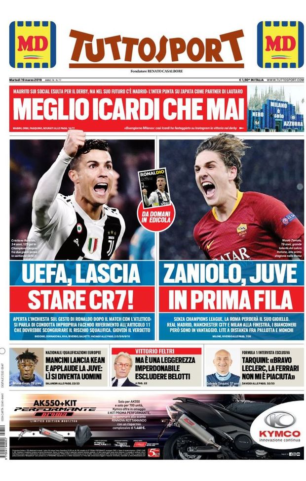 L’ edicola – 19 marzo 2019: le prime pagine dei quotidiani sportivi