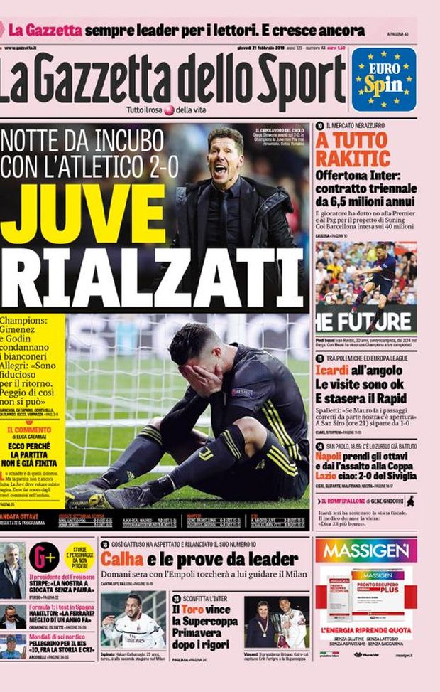 L’ edicola – 21 febbraio 2019: le prime pagine dei quotidiani sportivi