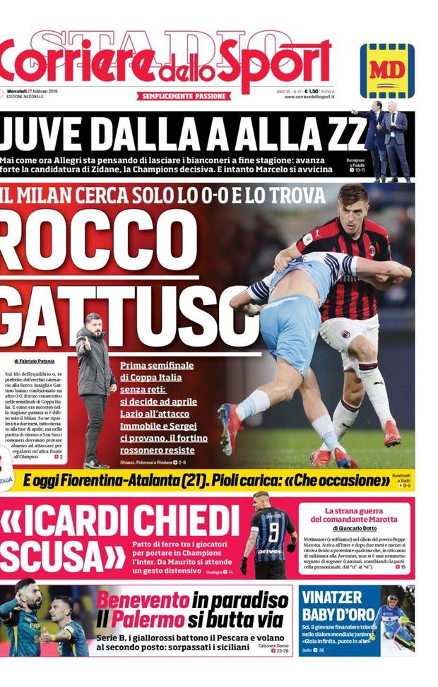 L’ edicola – 27 febbraio 2019: le prime pagine dei quotidiani sportivi