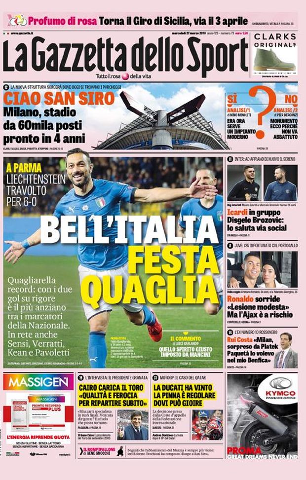 L’ edicola – 27 marzo 2019: le prime pagine dei quotidiani sportivi