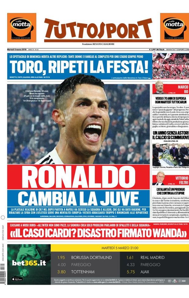 L’ edicola – 5 marzo 2019: le prime pagine dei quotidiani sportivi