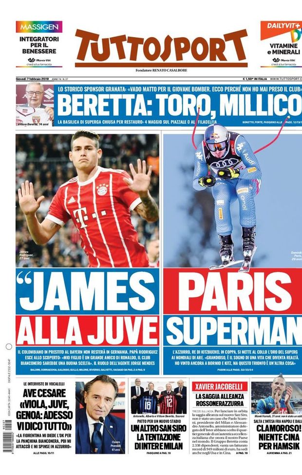 L’ edicola – 7 febbraio 2019: le prime pagine dei quotidiani sportivi