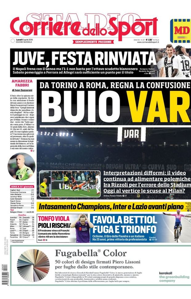 L’ edicola – 8 aprile 2019: le prime pagine dei quotidiani sportivi