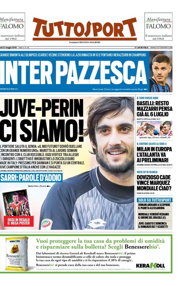 L’edicola – 21 maggio 2018: le prime pagine dei quotidiani sportivi