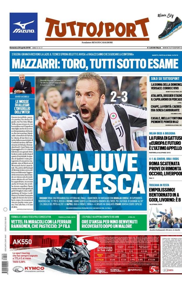 L’edicola – 29 aprile 2018: le prime pagine dei quotidiani sportivi