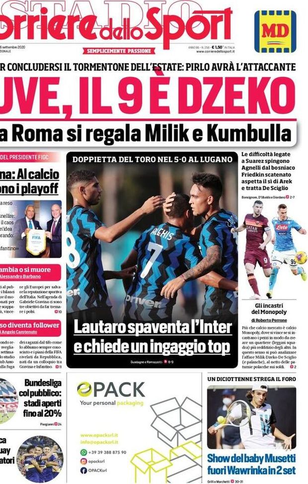 "ULTIME NOTIZIE MILAN NEWS - Il 'Corriere dello Sport', tra i giornali, apre in prima pagina con il nome del nuovo centravanti della Juventus. Sarà il bosniaco Edin Dzeko della Roma. I giallorossi, vicini a prendere Marash Kumbulla dal Verona e Mattia De Sciglio proprio dai bianconeri, lo sostituiranno con Arkadiusz Milik del Napoli. Convince l'Inter, che in amichevole schianta 5-0 il Lugano ad Appiano Gentile. I nerazzurri, però, si spaventano per l'elevata richiesta di ingaggio degli agenti di Lautaro Martínez per il rinnovo del contratto del 'Toro' argentino. Venerdì riparte la Bundesliga: gli stadi saranno aperti fino al 20% della loro capienza. Caos al Boca Juniors: gli 'Xeneizes' si sono presentati in Paraguay con giocatori positivi al CoVid_19.