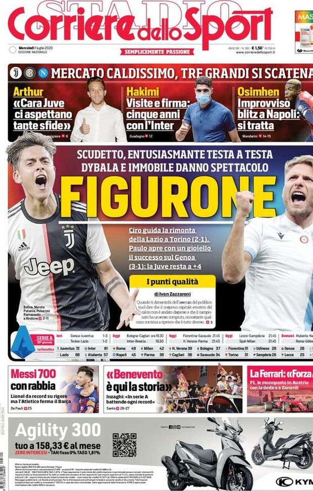 Milan sui media, le prime pagine dei giornali di oggi (01/07/2020)
