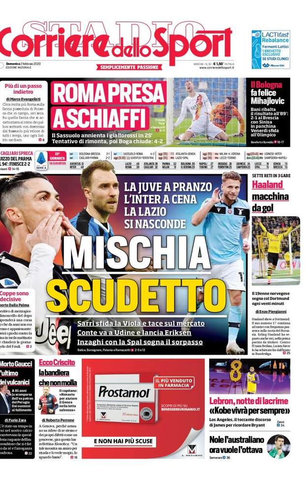 Milan sui media, le prime pagine dei giornali di oggi (02/02/2020)