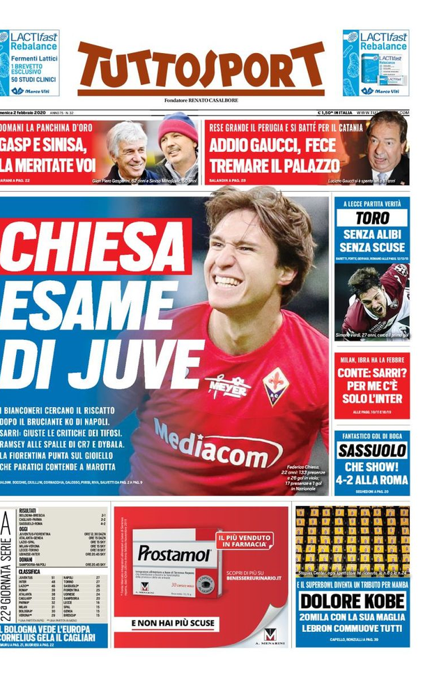 Milan sui media, le prime pagine dei giornali di oggi (02/02/2020)